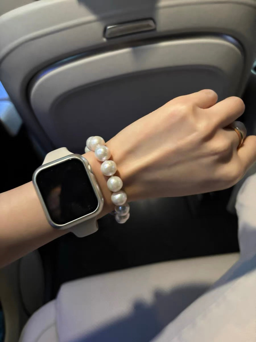 Completely out of round, ringed and other shapes these pearls are a true masterpiece of unique treasures and characteristics specific to each bracelet. The rings and ridges lead to a more ruptured appearance on some pearls and not others. sparkling glow throughout the surfaces of all the pearls and creates a cohesive quality within the bracelet. This piece of jewellery serves multiple purposes and will always be impressive to anyone who sees it.